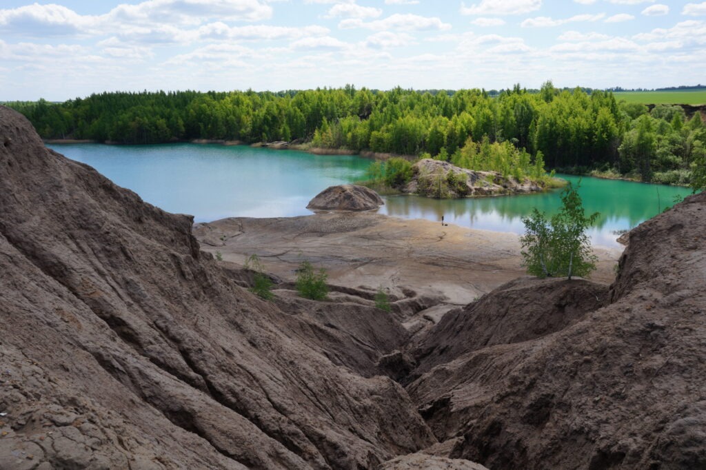 Мы были на Голубых озерах прошлой осенью и вот наступил май, нас снова потянуло к тульским красотам. Здесь можно посмотреть фотографии — осенние Кондуки. Сейчас кое-что изменилось в этих местах. Засыпали щебнем дорогу и вот-вот начнут асфальтировать ее, установили вдоль дороги фонари, создается стоянка для машин, над которой уже реют вымпелы авто Duster. Похоже, коммерция подкрадывается к Голубым озерам и это немного настораживает. Группа из четырех Дастеров при нас взобралась на гору к надписи КОНДУКИ, а потом довольно рискованно две машины спустились на площадку, находящуюся ниже. Видимо, молодежь хотела продемонстрировать окружающим мастерство вождения, а заодно прорекламировать проходимость машин. Ну, прямо скажем, подумалось совсем о другом в этот момент … Эх, молодость, молодость!…  Сейчас Голубые озера заполняются туристическими палатками. Это здорово! Если бы мы были помоложе, то наверняка махнули бы сюда со своими друзьями на пару-тройку деньков. Видели нескольких купальщиков, но думаю, что водичка пока что холодновата для плавания. Завидовала парочке, которая гребла на надувной лодке. Ах, какие кадры можно было снять с лодки! Единственное, что хочется пожелать всем туристам, которые отдыхают в этом удивительном месте — не засорять его и сберечь ту красоту, которую создала волшебница-природа после свершившегося здесь однажды грубого человеческого вмешательства.